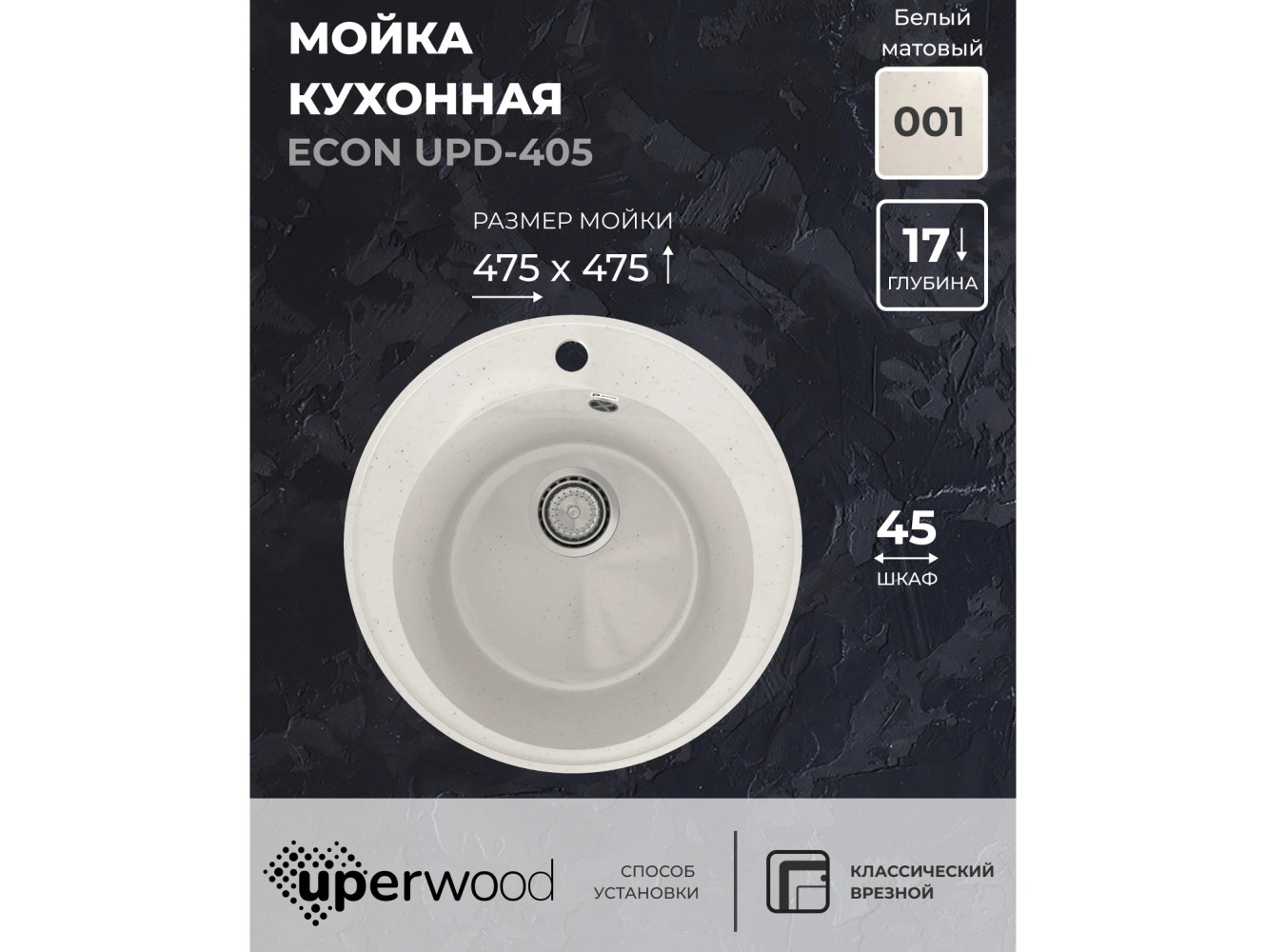 Кухонная мойка Uperwood ECON UPD-405-001 белая матовая