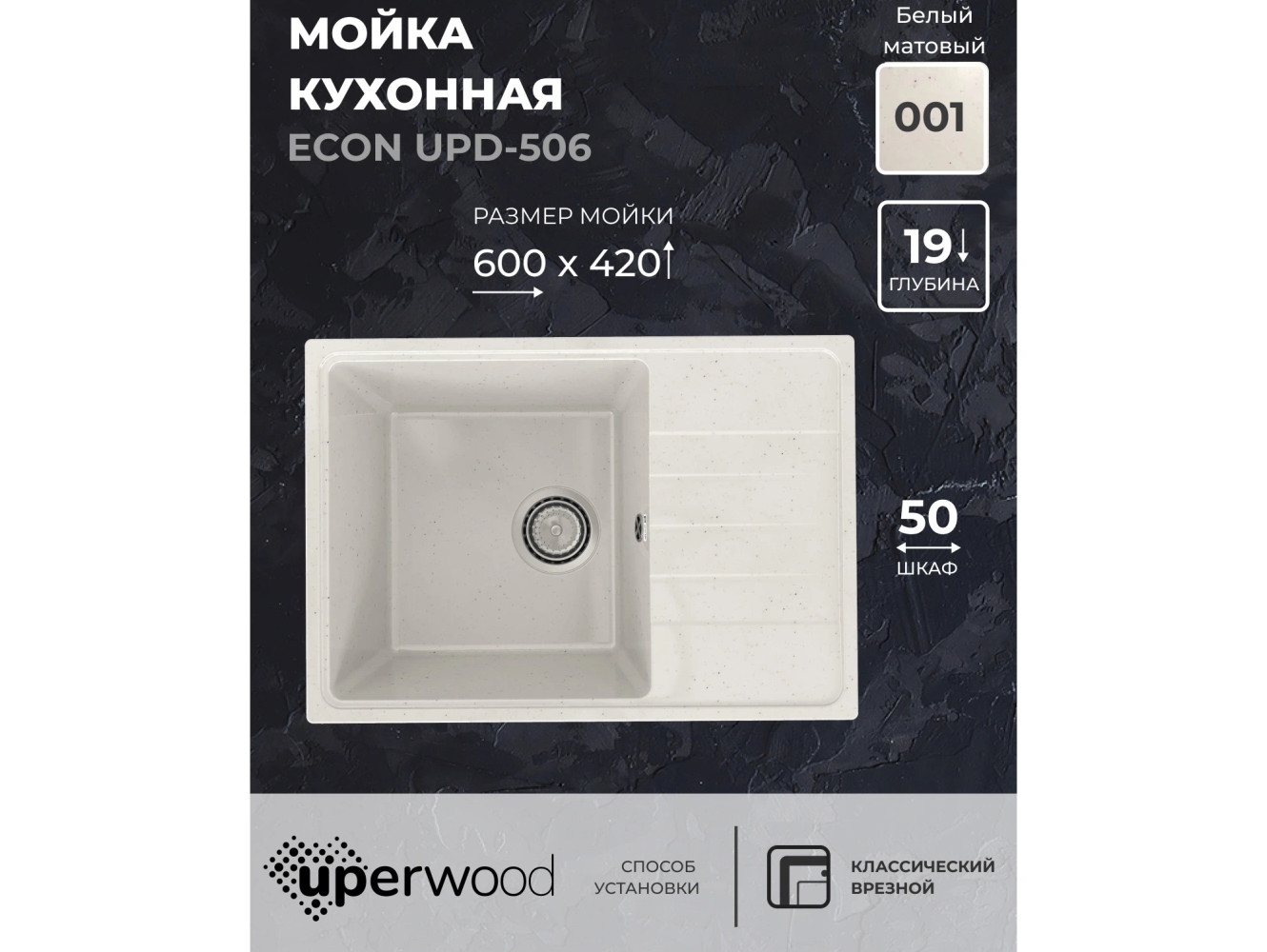 Кухонная мойка Uperwood ECON UPD-506-001 белая матовая
