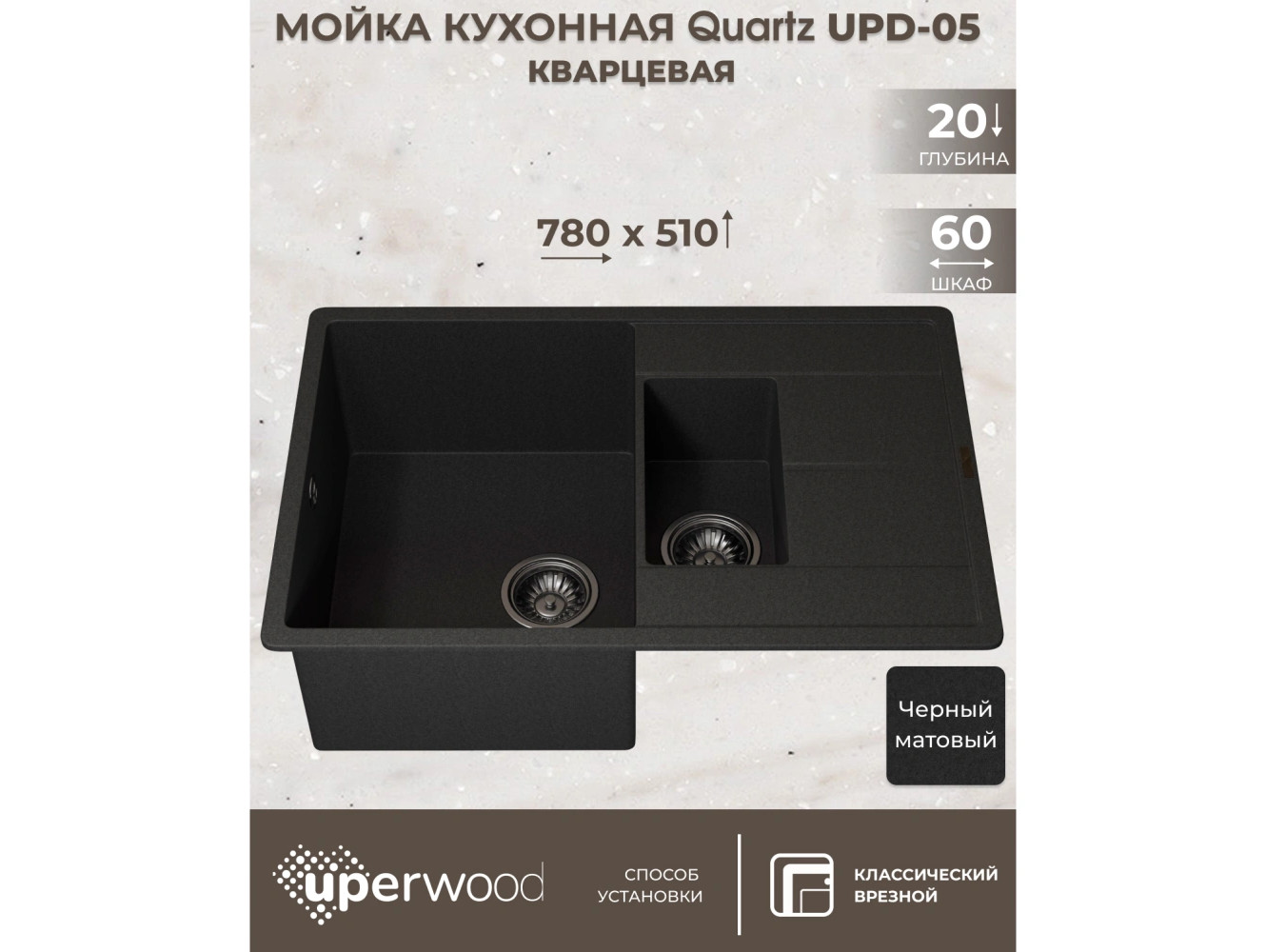 - Кухонная мойка Uperwood Quartz UPD-05-04 черная матовая