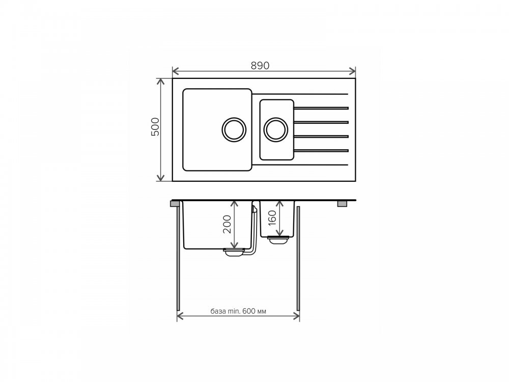 - Кухонная мойка Tolero twist TTS-890 Серый 701