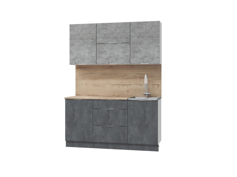 - Фасад: МДФ + пленка ПВХ (шкафы настенные - "Бетон светлый", шкаф-столы кухонные - "Бетон темный"
