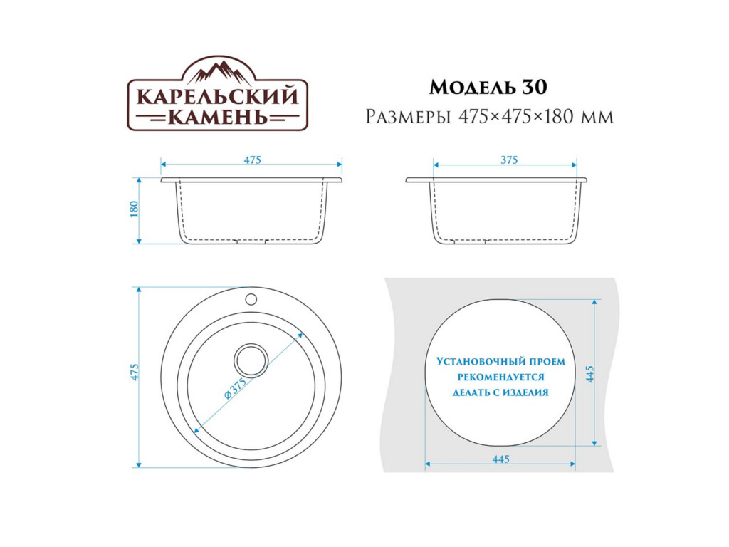 - Мойка врезная Карельский камень модель 30 Черный
