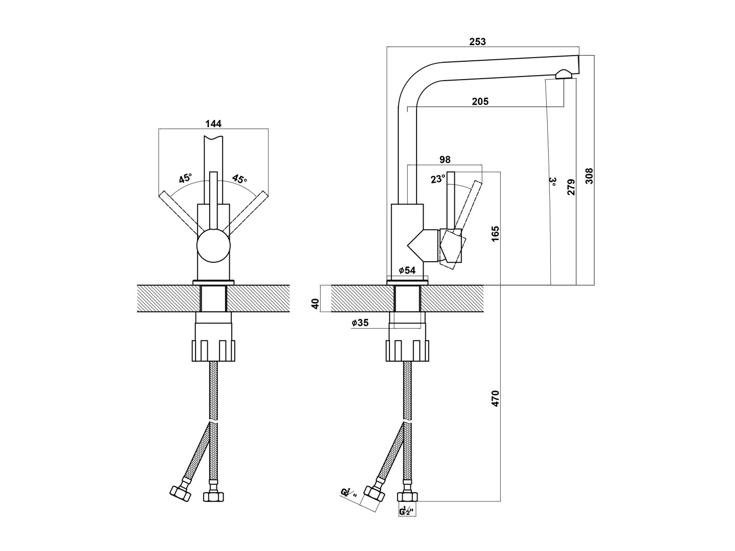 Рычажное управление, керамический картридж 35 мм.