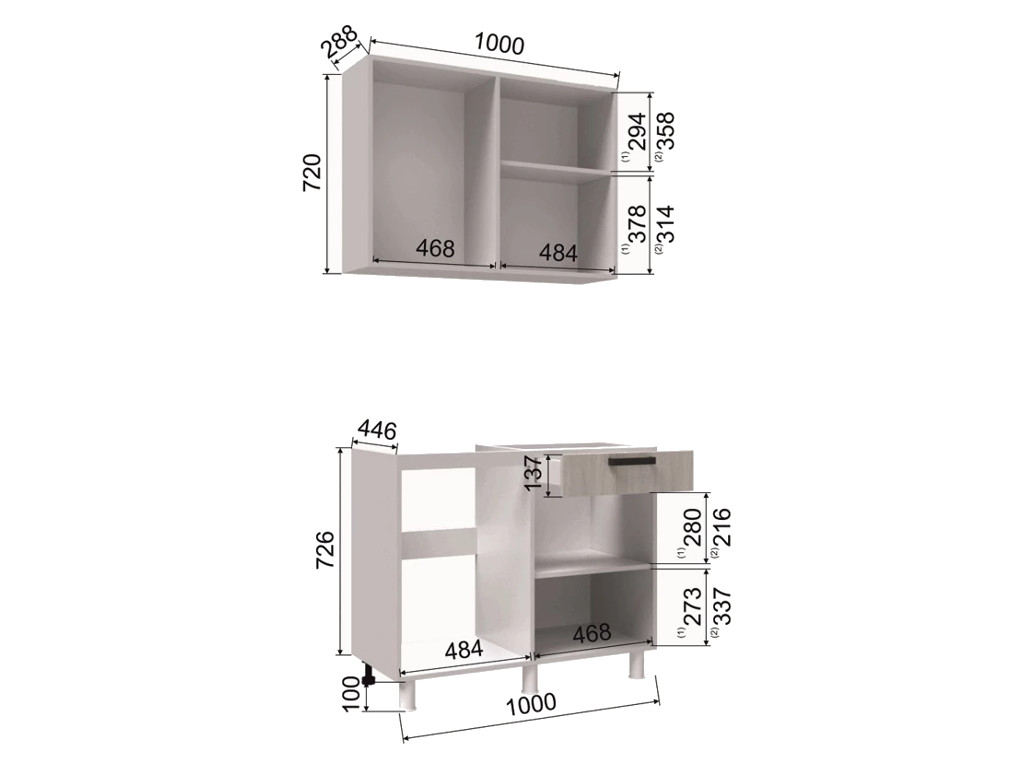 - Кухня Аликанте 1000 МДФ Белый снег без столешницы