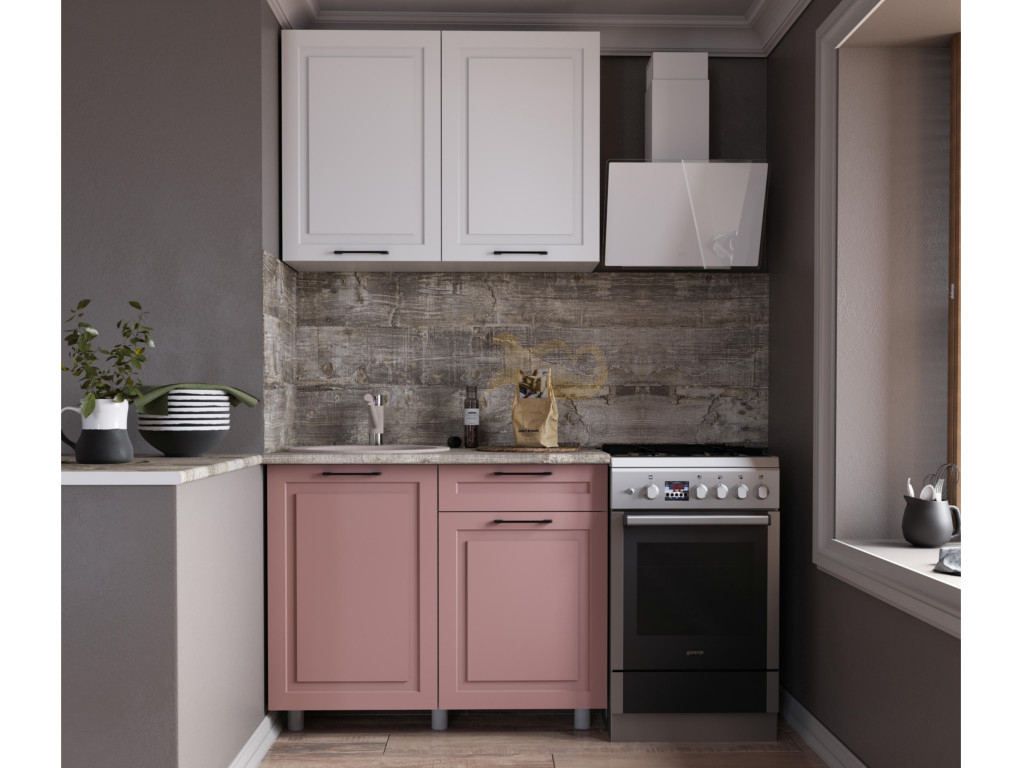 - Кухня Аликанте 1000 МДФ Белый снег/пудра без столешницы