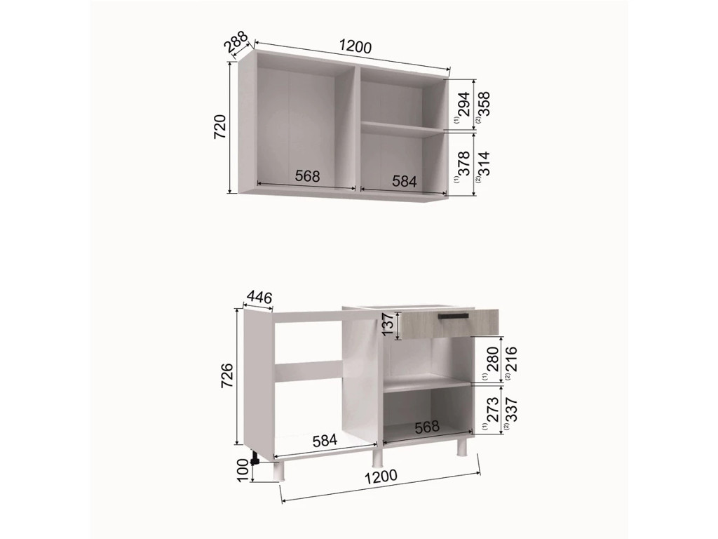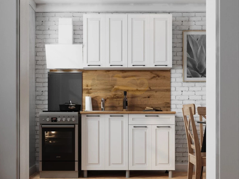- Кухня Аликанте 1200 МДФ Белый снег без столешницы