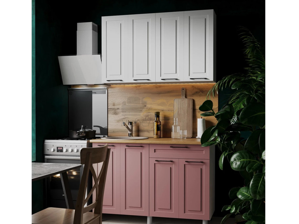 Кухня Аликанте 1200 МДФ Белый снег/пудра без столешницы
