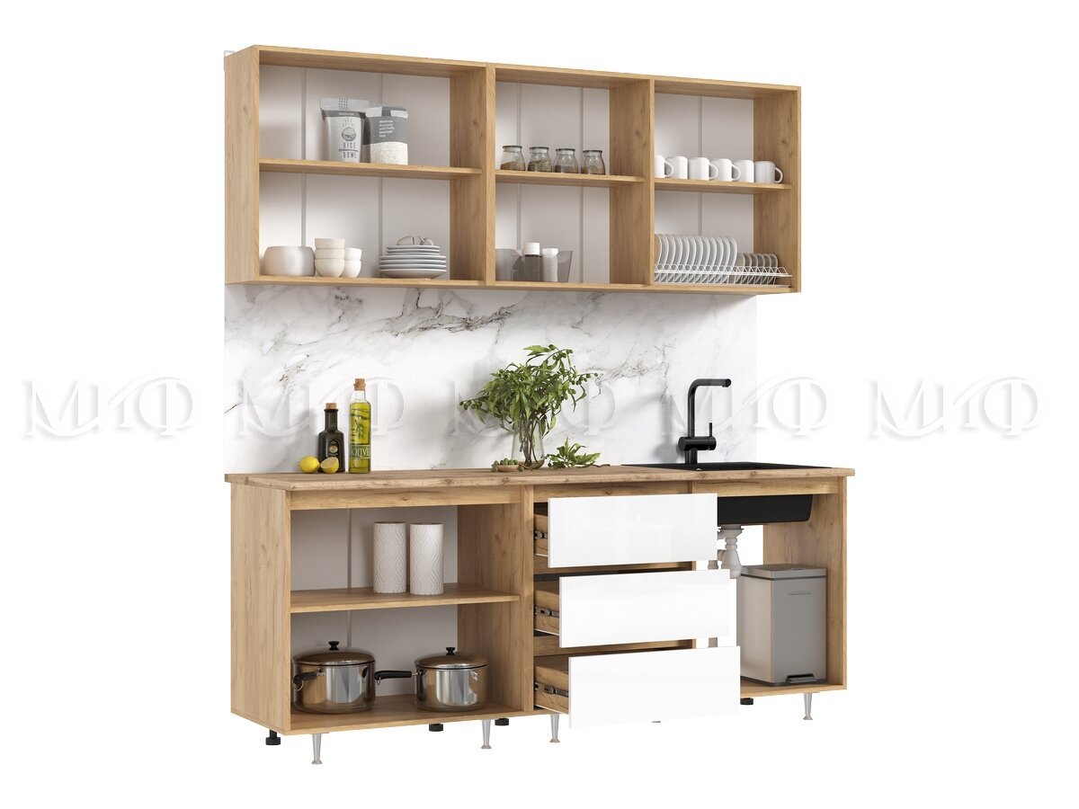 - Кухня Челси 2000 мм Компановка №2 Белый глянец холодный, Дуб Крафт (Кастилло)