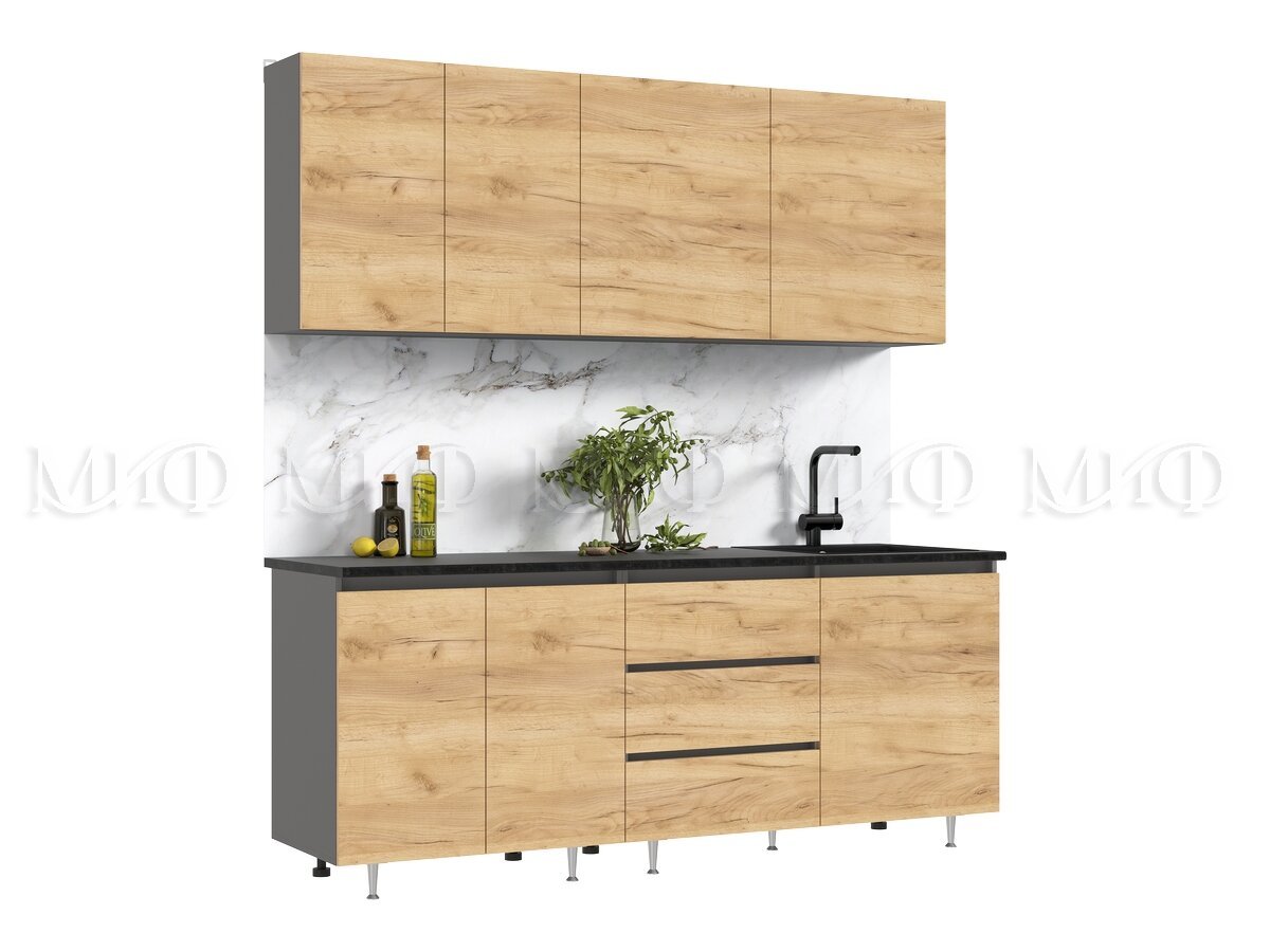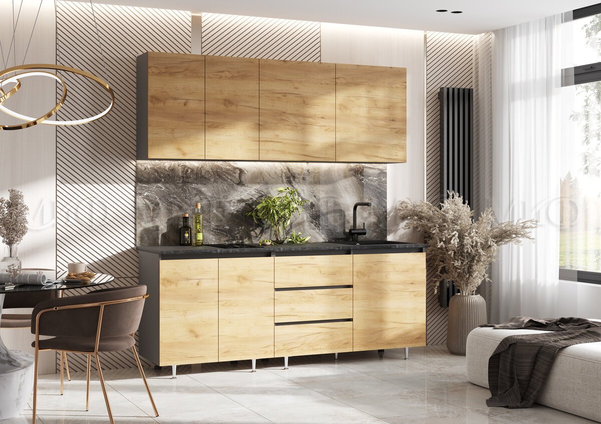 - Кухня Челси 2000 мм Компановка №2 Дуб Крафт, Графит (Кастилло)