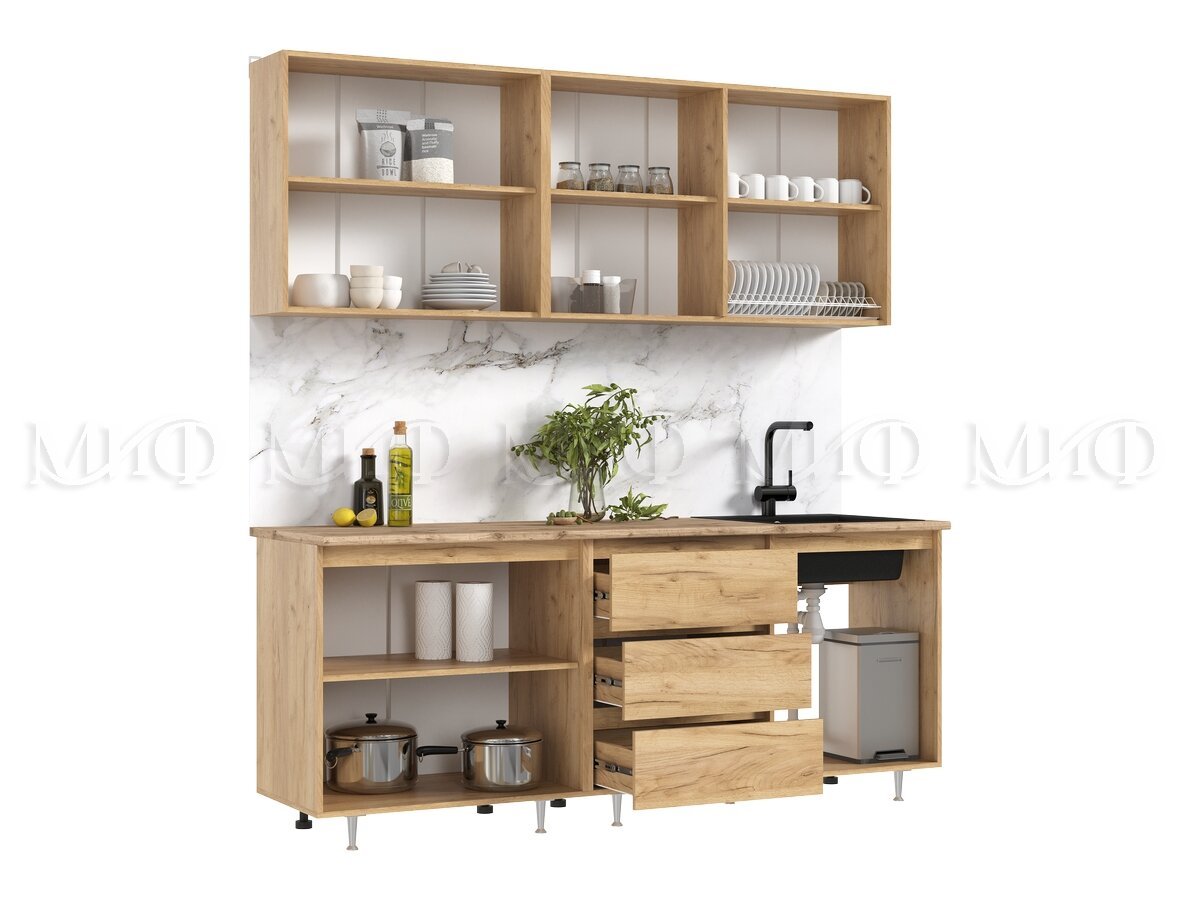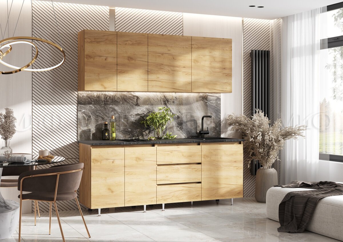 - Кухня Челси 2000 мм Компановка №2 Дуб Крафт (Кастилло)