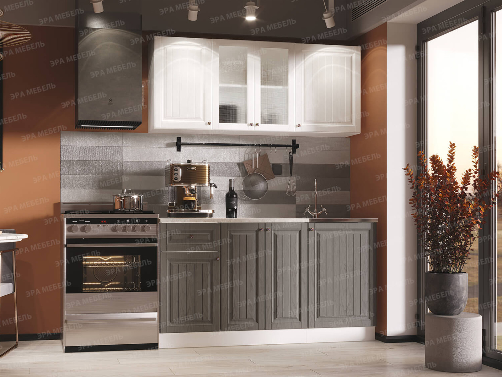 - Кухня Хозяюшка 1500 МДФ Акация белая-Трюфель