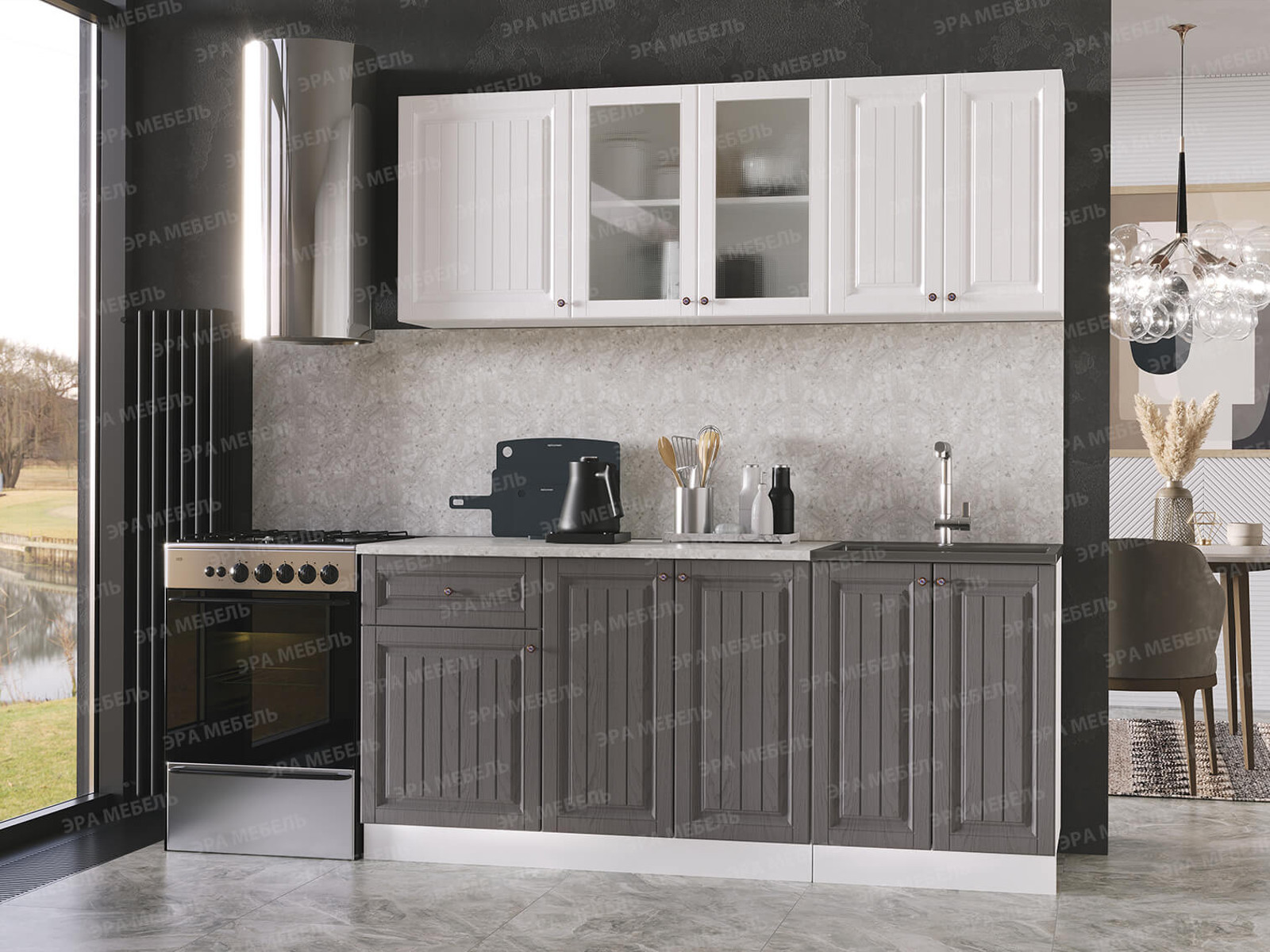 - Кухня Хозяюшка 2000 МДФ Акация белая-Трюфель