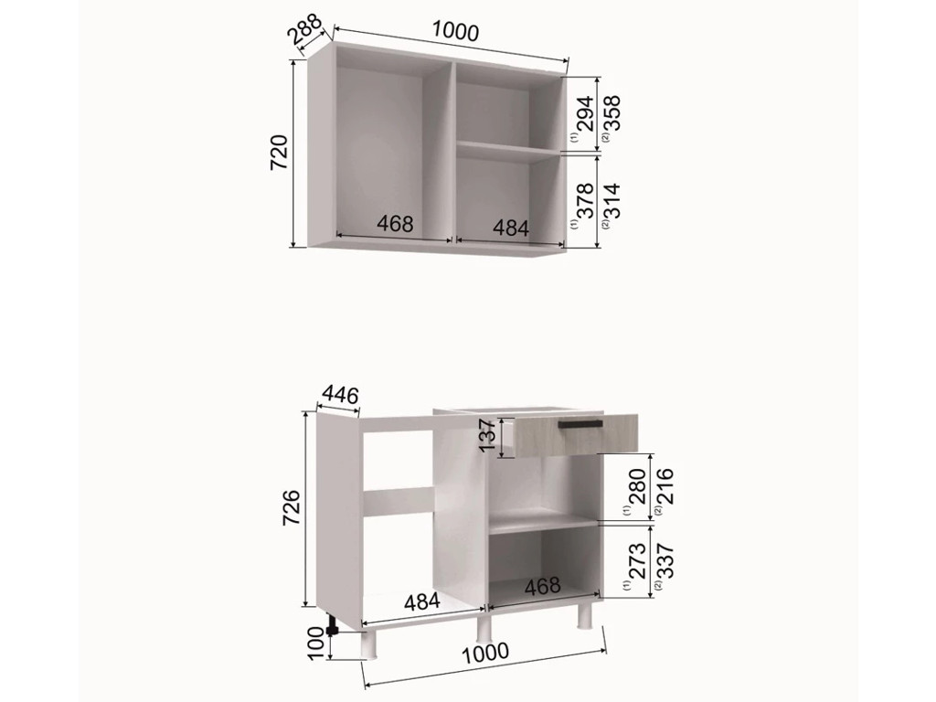 - Высота верхних шкафов, мм 720