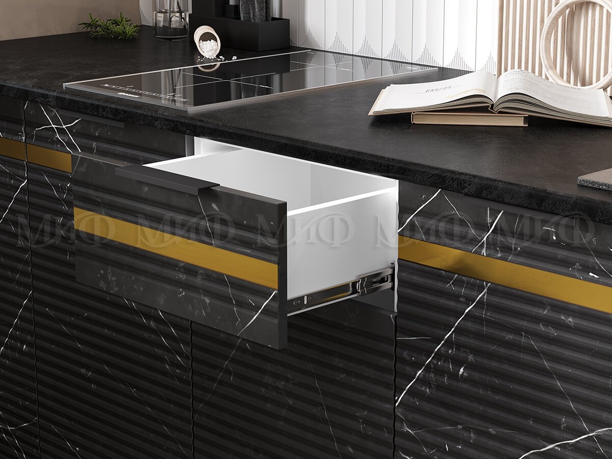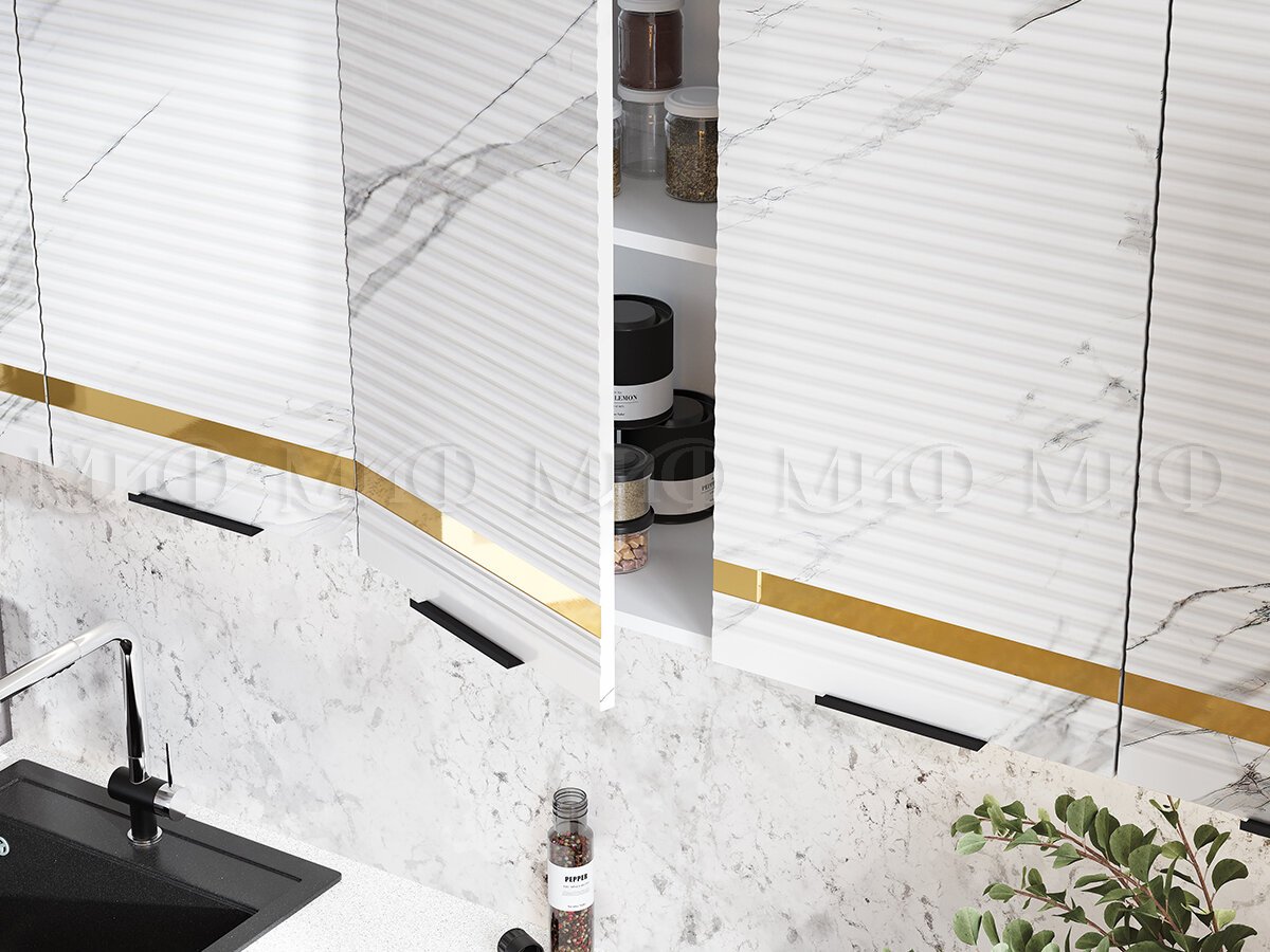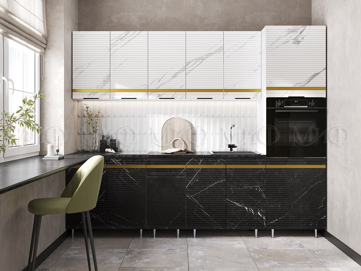 - Кухня Милена 2,6 м Мрамор белый софт/Мрамор блэк софт