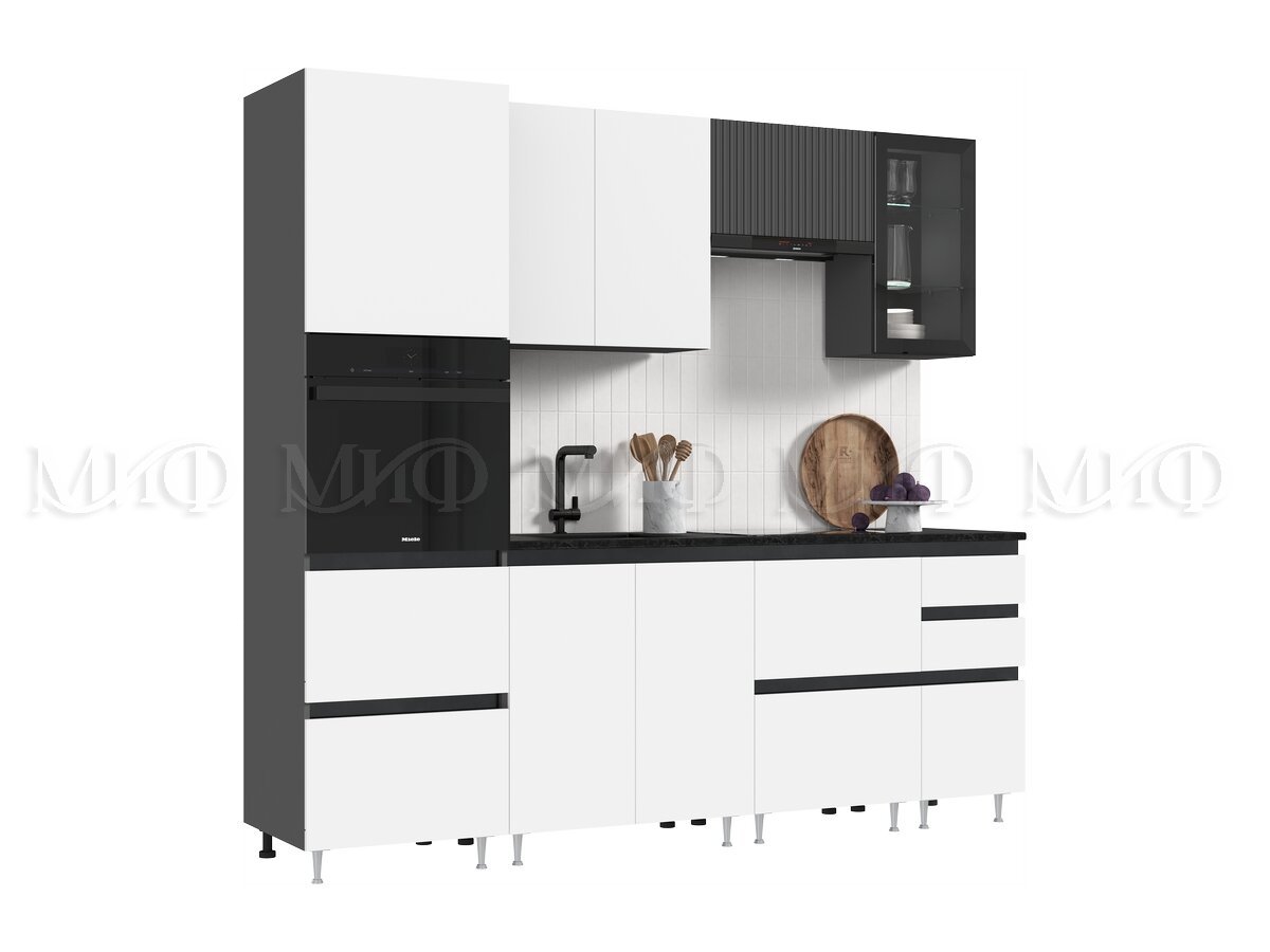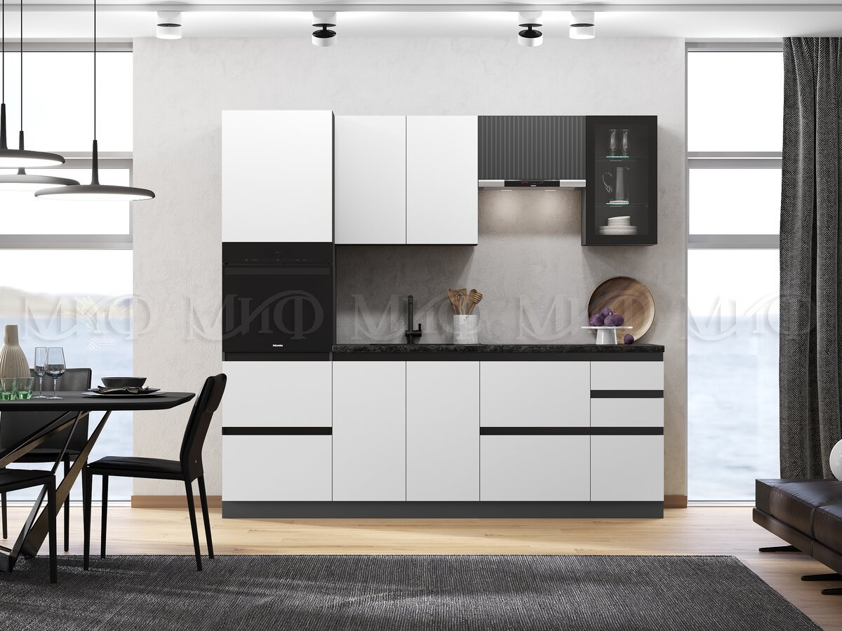 - Кухня Техно-6 2400 мм Графит/Белый снег софт