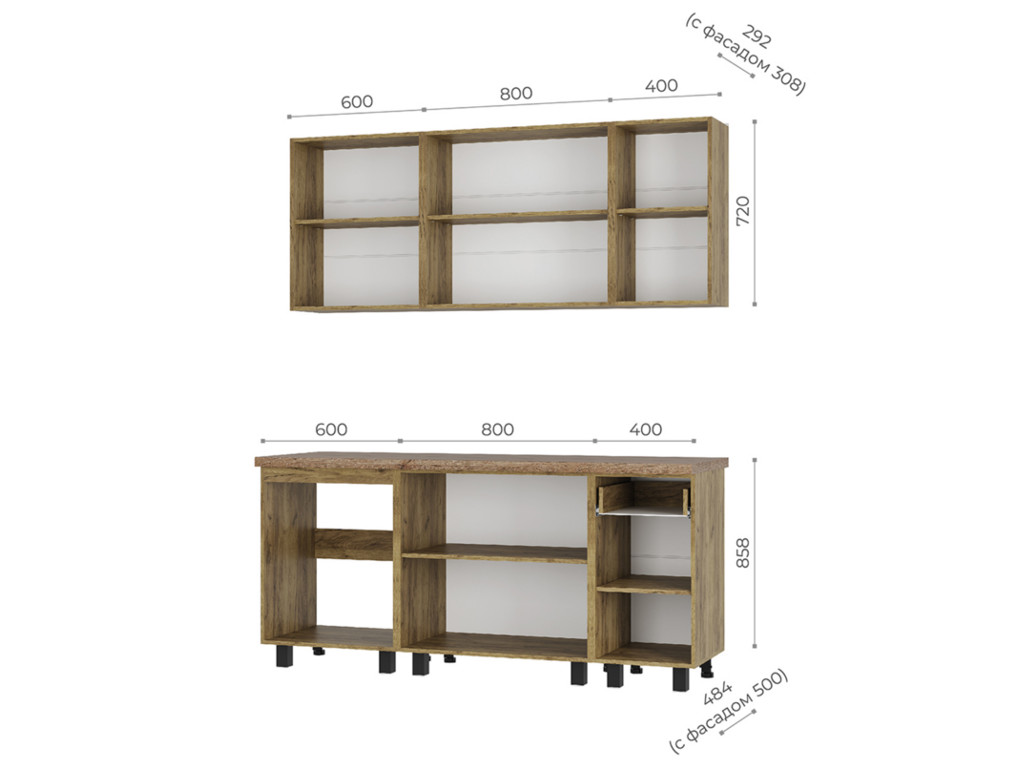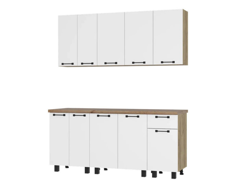 - Комплектуется цельной столешницей размером 1,8 м, толщиной 38 мм, декор - дуб кера.