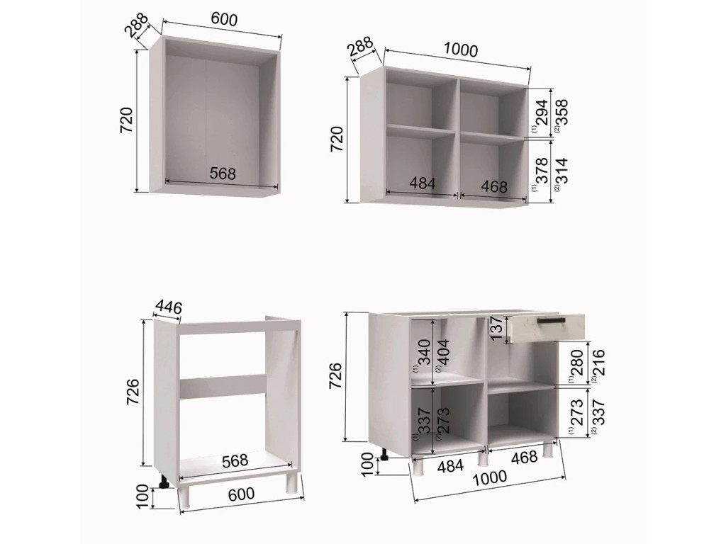 - Высота верхних шкафов, мм 720