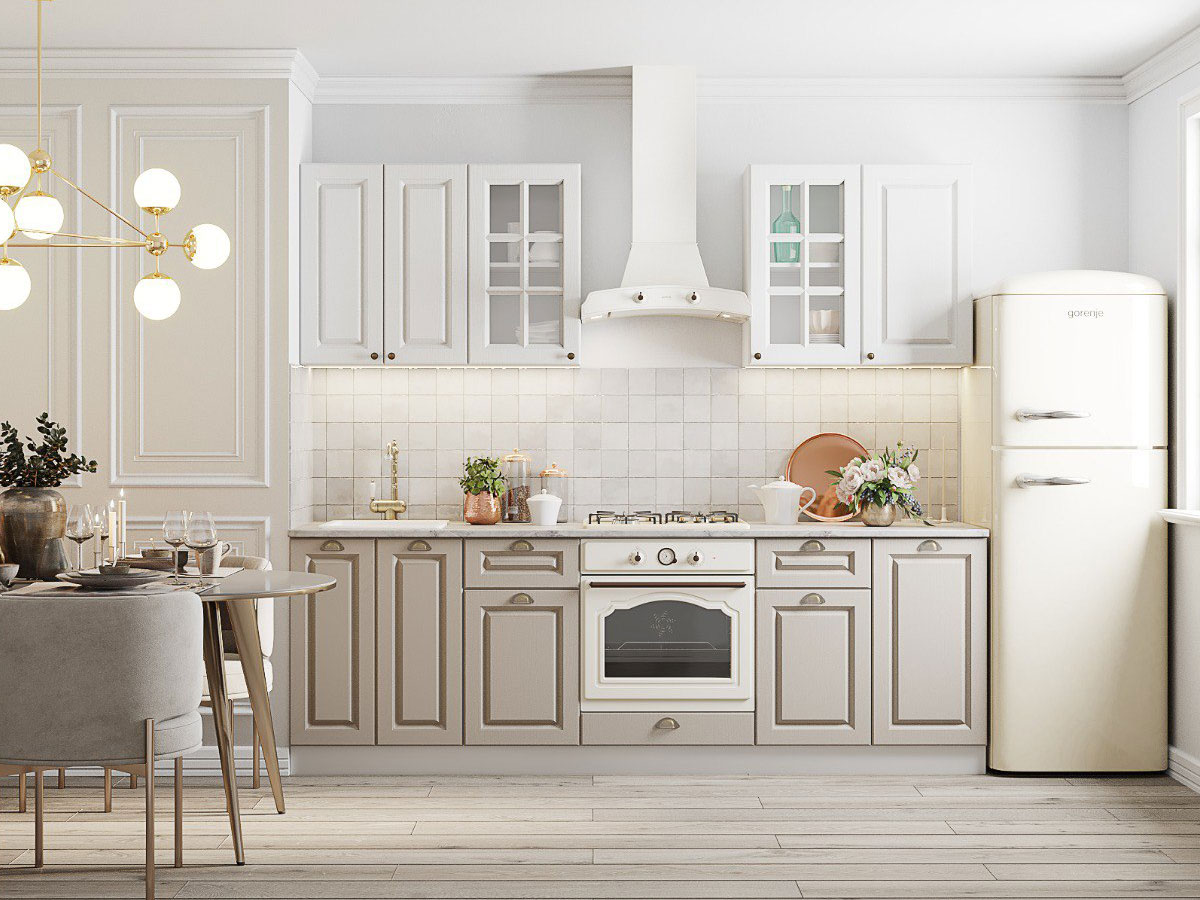 Высота: верхних шкафов 720 мм, нижних - 820 мм.