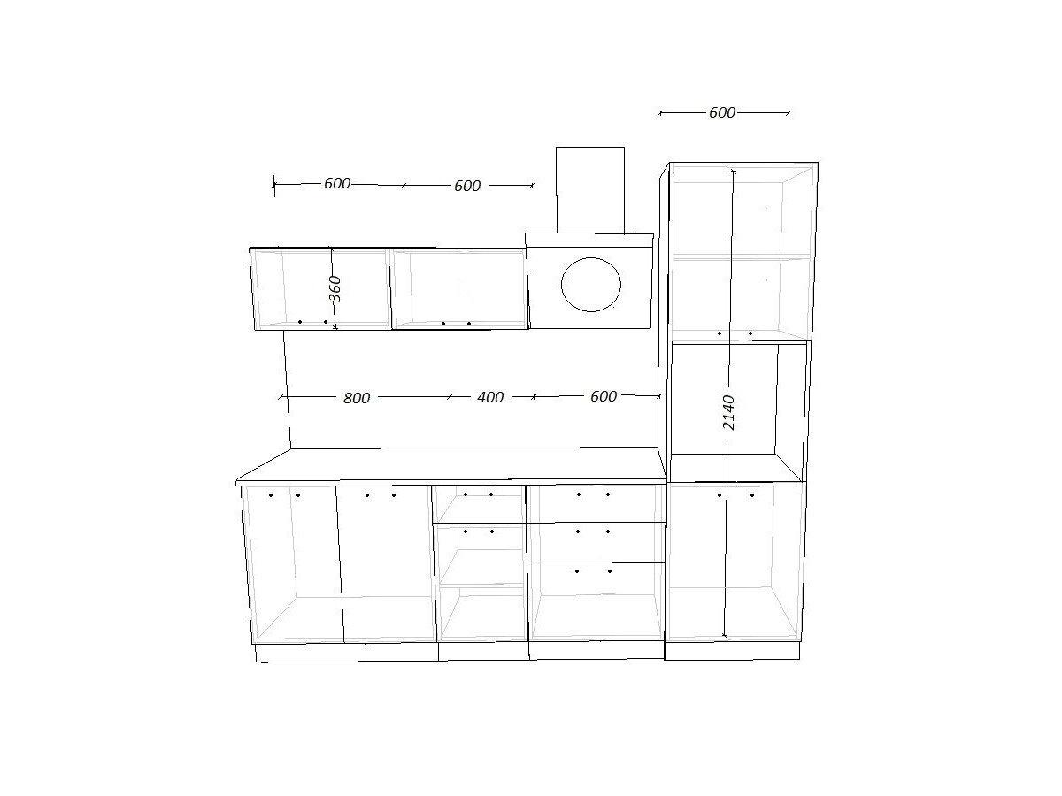 - высота верхних шкафов 720 мм