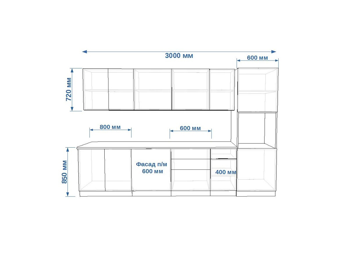- высота верхних шкафов 720 мм