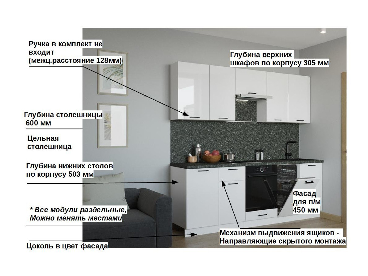 - Кухонный гарнитур арт 19 Белый глянец 2450 мм