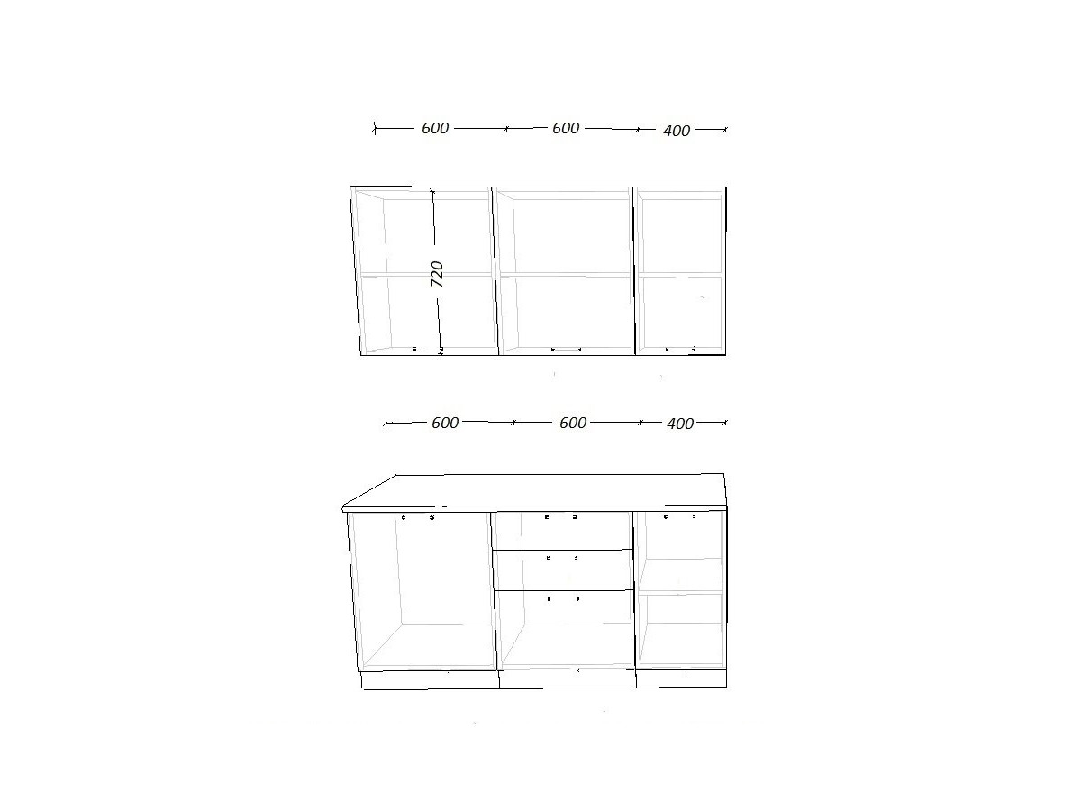 - высота верхних шкафов 720 мм