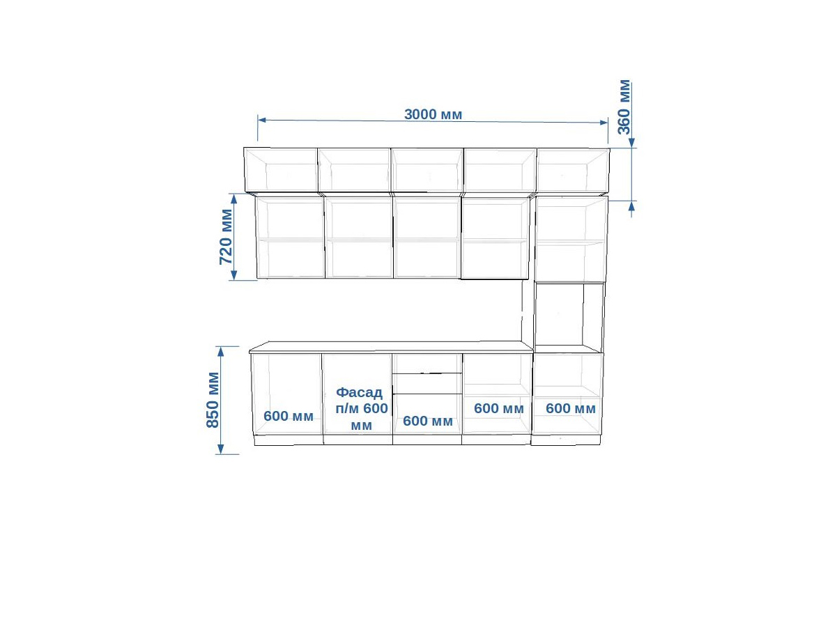 - Кухонный гарнитур арт 52 Лайн Стамбул Тальк 3000 мм