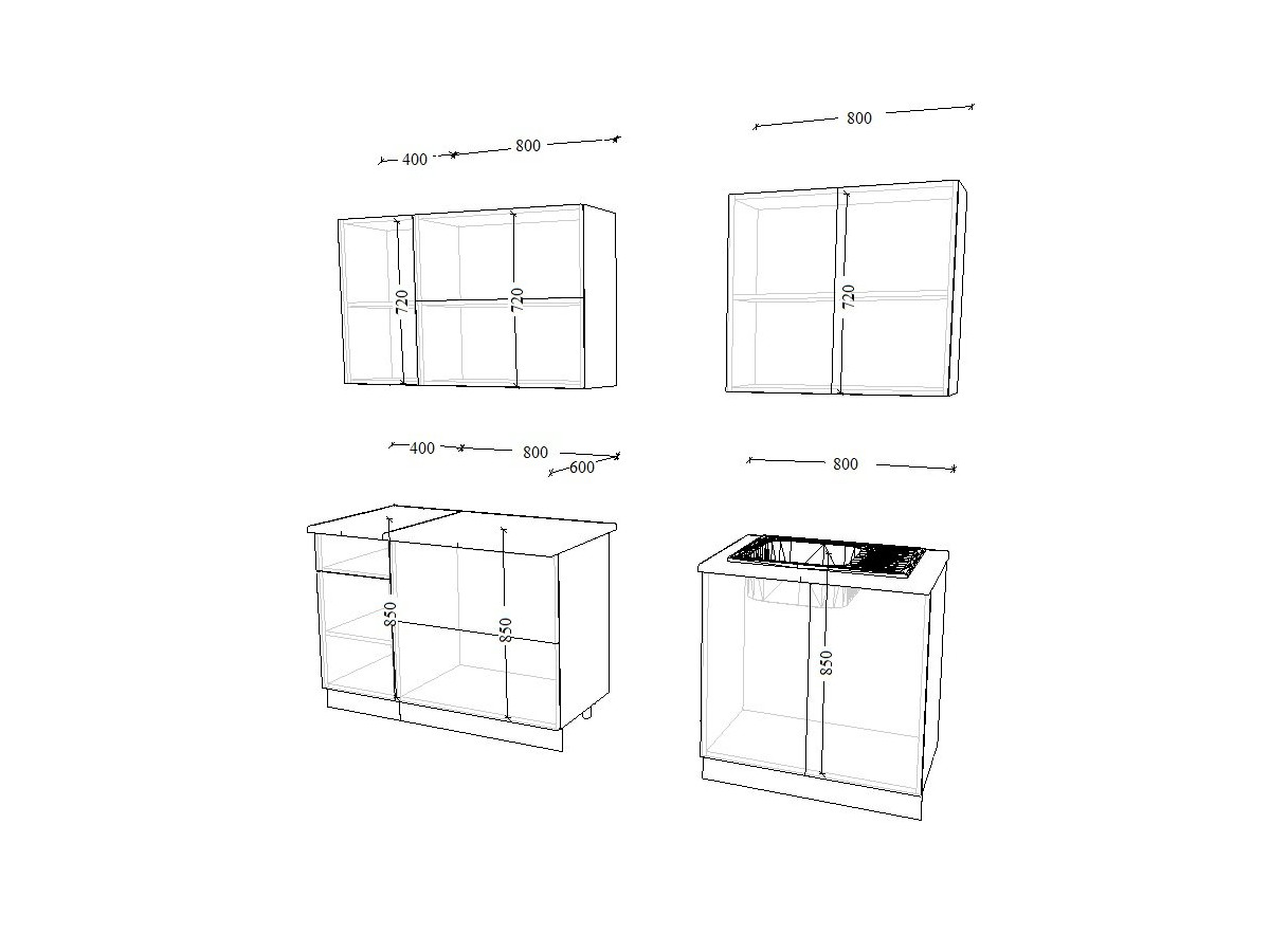 - высота верхних шкафов 720 мм