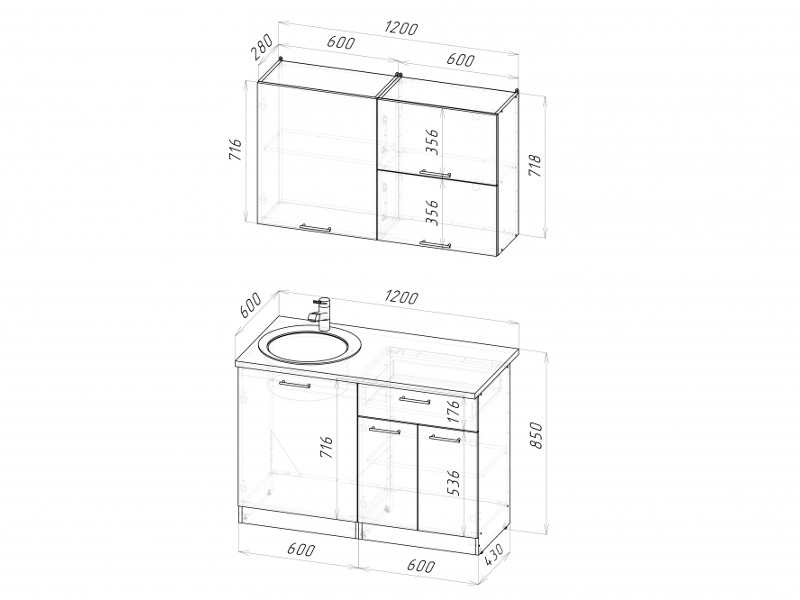 - Высота шкафов, мм 720
