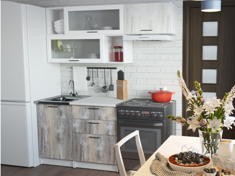 Мойка, смеситель, стеновая панель и посудосушитель в комплект гарнитура не входят.