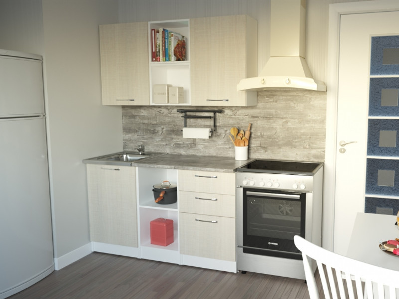 Мойка, смеситель, стеновая панель и посудосушитель в комплект гарнитура не входят.