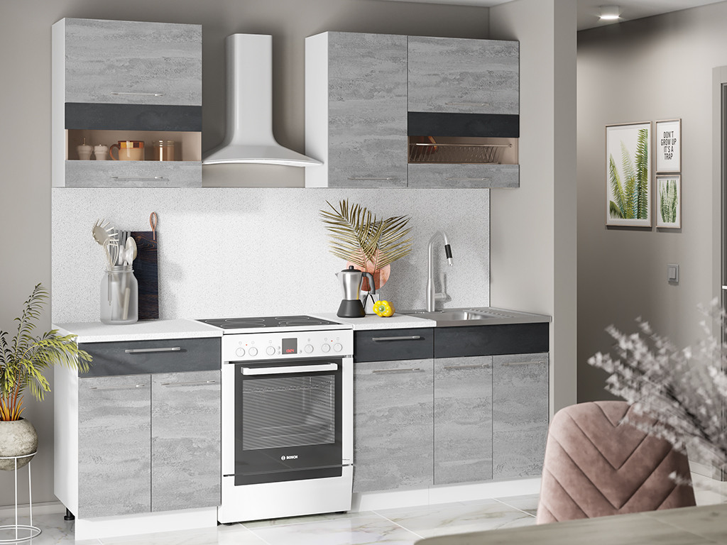- Кухонный гарнитур Маша-2 1600 бетонный-каменный уголь