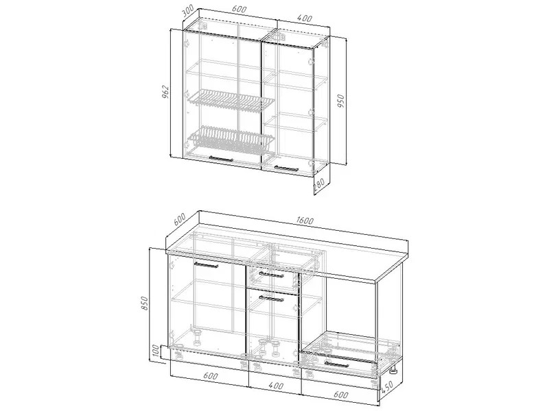 - Кухонный гарнитур Меренга 1600 (верх 950 мм) МДФ
