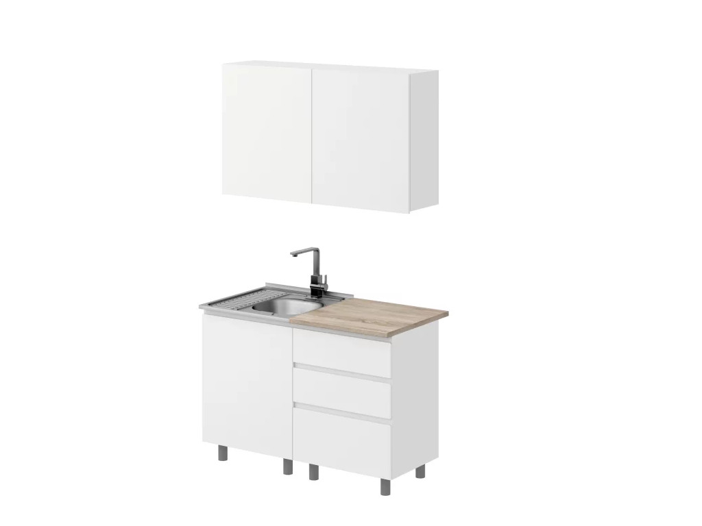 - Нижний модуль под мойку (60х82х47 см): компактный и вместительный, идеально подходит для размещения сантехники и хранения моющих средств.