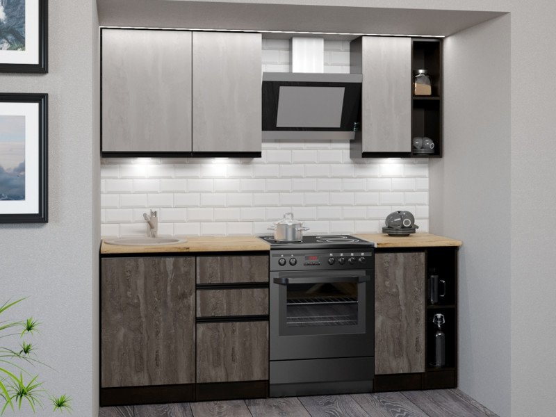 Мойка, смеситель, стеновая панель и посудосушитель в комплект гарнитура не входят.