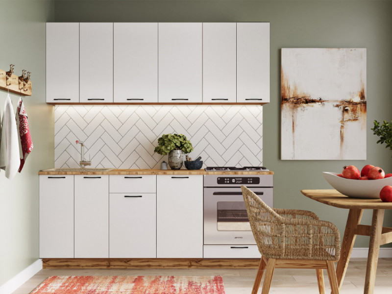- Кухонный гарнитур Валерия 2000 мм МДФ Вотан/Белый со шкафом под духовку