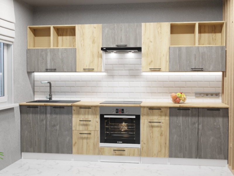 Мойка, смеситель, стеновая панель и посудосушитель в комплект гарнитура не входят.