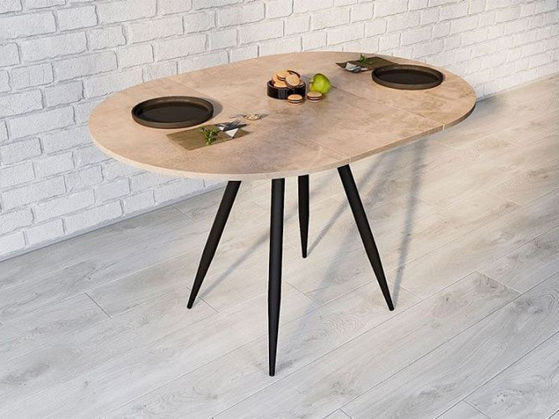 - Стол Элип раздвижной камень светлый/черный