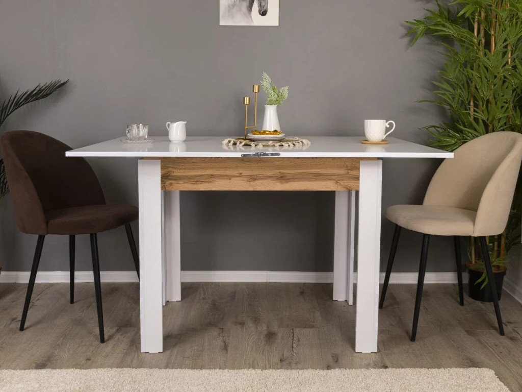 - Стол обеденный Doma раскладной Белый бриллиант/Дуб вотан