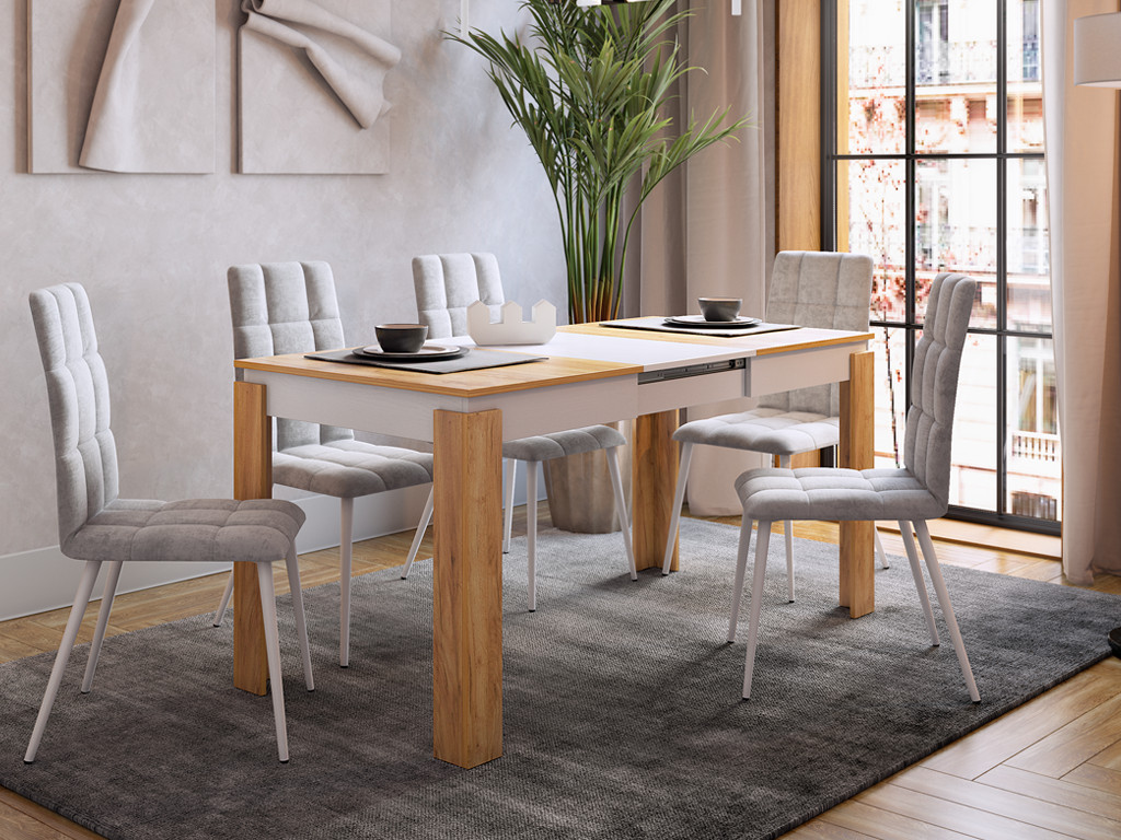 Стол обеденный раздвижной Гермес 2 дуб крафт золотой/белое дерево