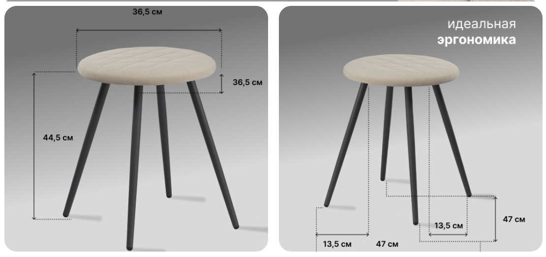 - Табурет Йорк.2 Велюр dream stone серый