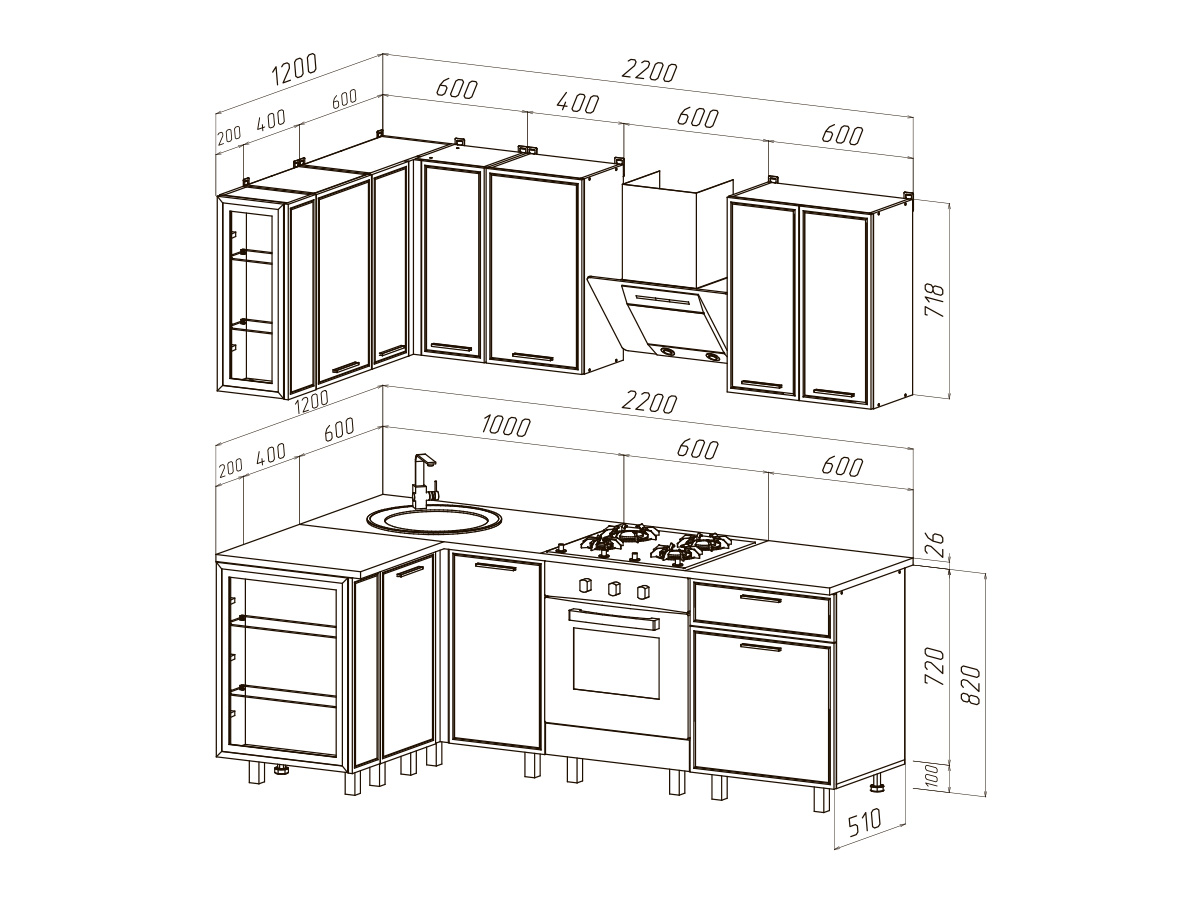 Кухня Бьянка 1,2*2,2 м Олива софт, Дуб Крафт