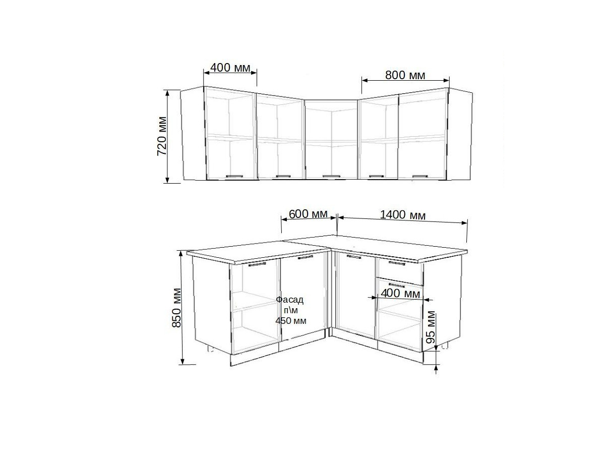 - Кухонный гарнитур 15Р РоялВуд 1450х1400 мм