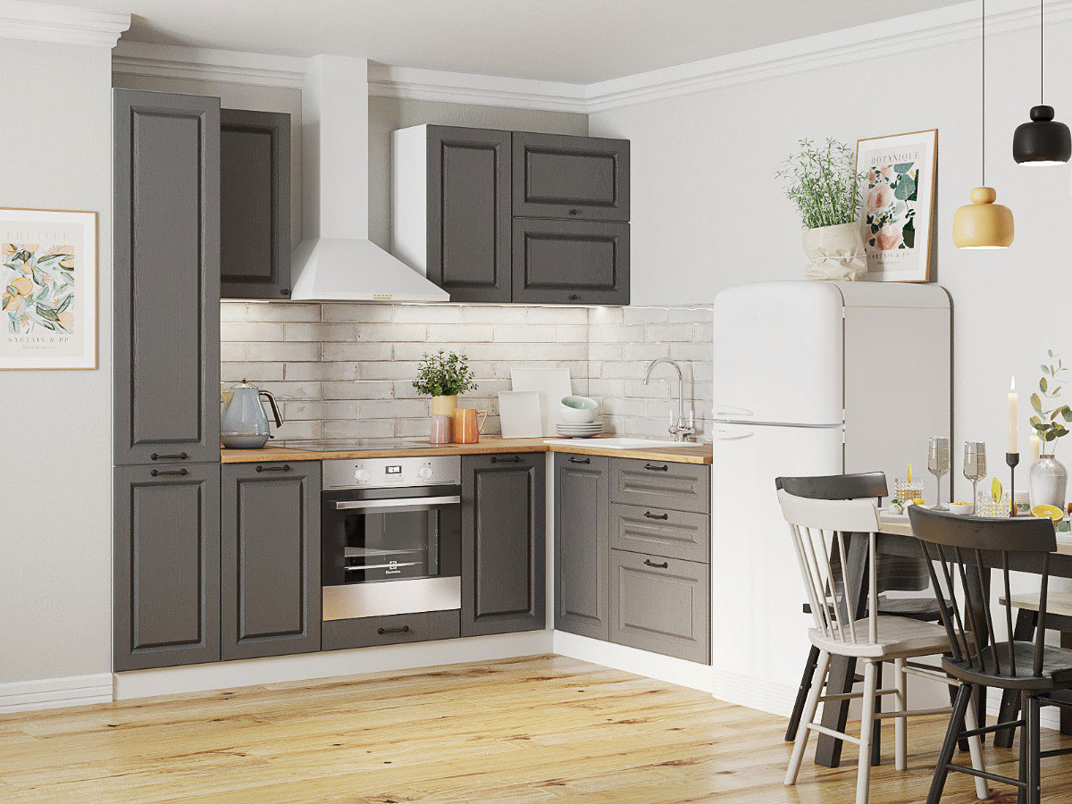 - Кухонный гарнитур Африканское Лапачо графит 2400х1600 мм