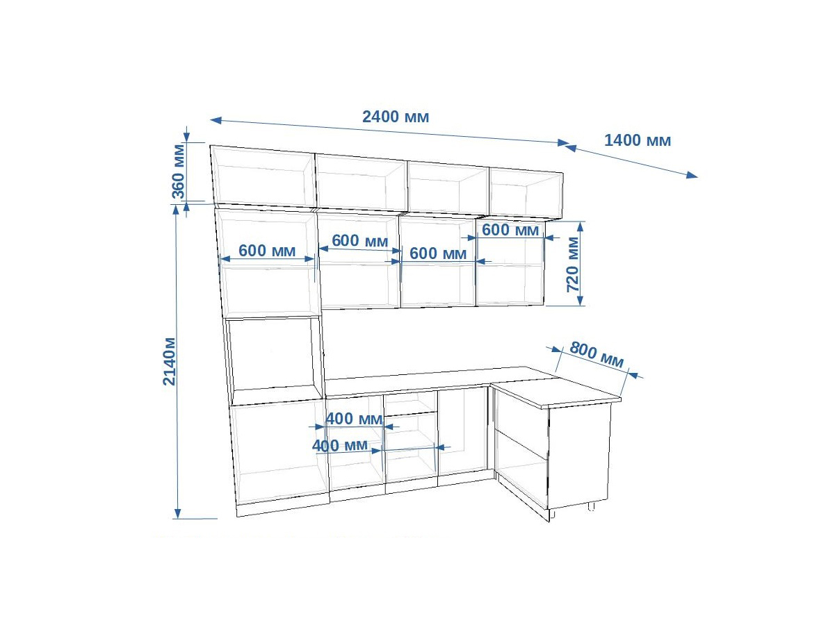 - высота верхних шкафов 720 мм