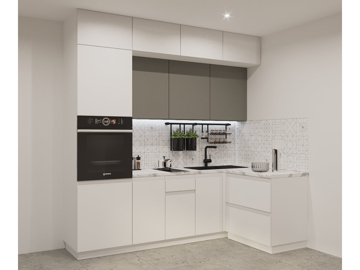 Кухонный гарнитур арт 21 Лайн Обсидиан Тальк 2400х1400 мм