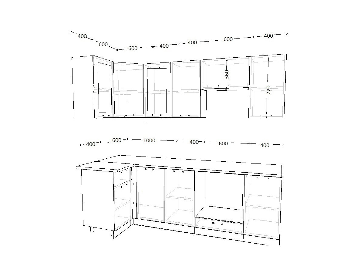 - высота верхних шкафов 720 мм
