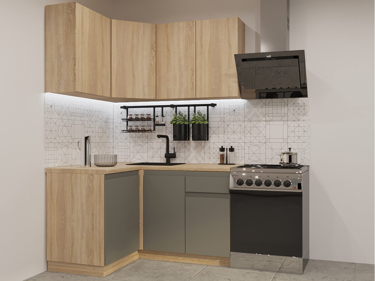 - Кухонный гарнитур арт 6 Лайн Дуб сонома Обсидиан 1200х1400 мм