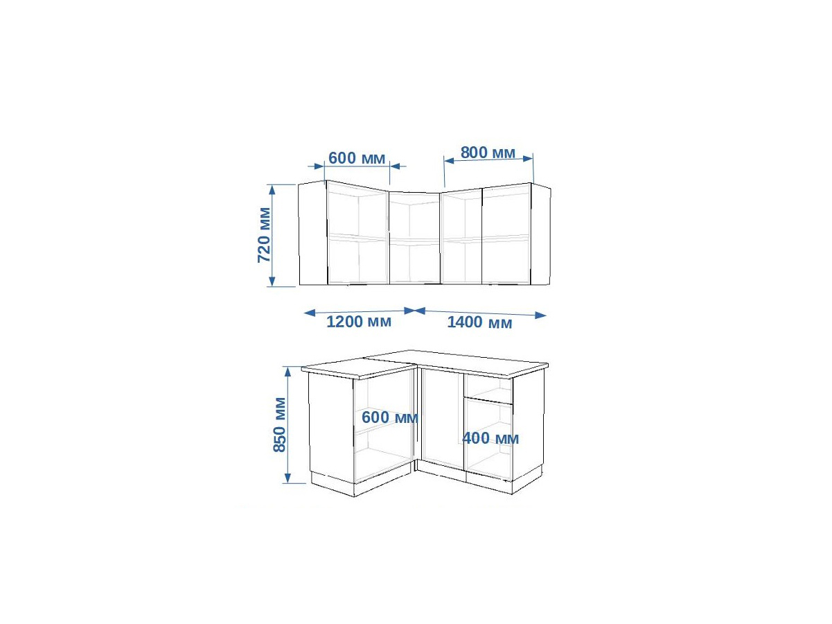 - высота верхних шкафов 720 мм