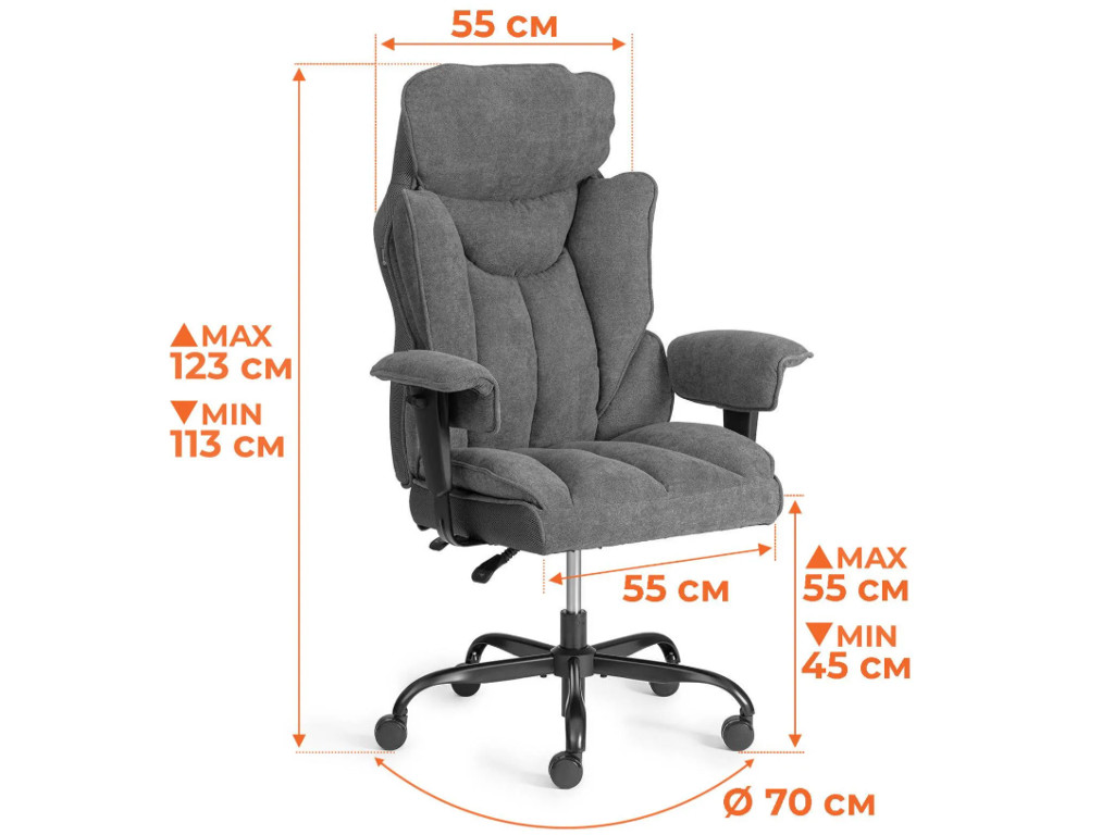 - Основание: - 5-лучевая стальная крестовина с черным порошковым покрытием, разборная